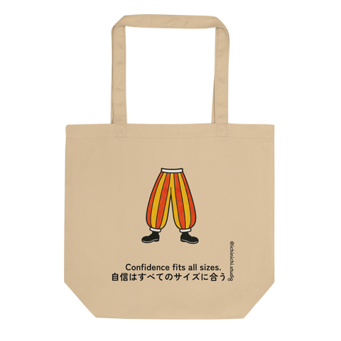 This eco tote bag carries the same joyful absurdity as “Clown Pants” — a minimal depiction of oversized, brightly striped trousers, walking with calm confidence.
