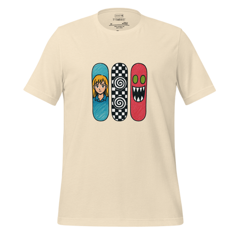 A calm, skate-inspired reel built from simple motion — an NYC sidewalk walk-up, a Shinjuku overpass drift, and a Barcelona tile-lined stride. The video reflects the playful, graphic energy of the stacked board designs.