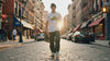 A cinematic glimpse into the streets of SoHo, capturing the kinetic energy of downtown New York. This video features the Taxi Ghost 213 tee styled with an authentic skater aesthetic, mirroring the rush of the city against the classic cobblestone backdrop.