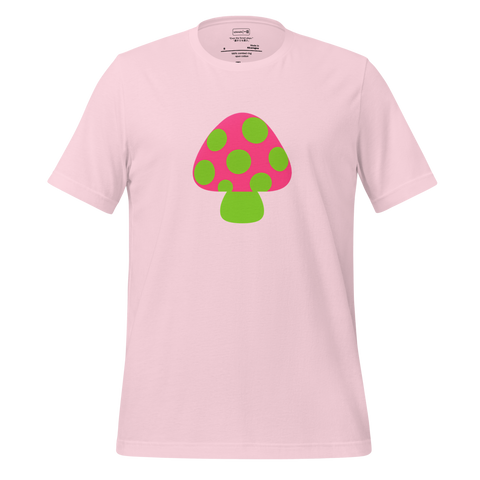 This unisex staple tee turns a mushroom into bold design — a pink cap covered in oversized green dots. Minimal, geometric, and fun, it’s a wearable mix of nature and pop art.