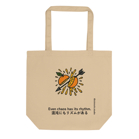 Captured in the golden groves of Vero Beach, Florida, this lifestyle video features our Split Second eco tote bag in a warm, sunlit setting. The scene follows a woman strolling through an orange grove, the tote bag resting naturally on her shoulder as she walks toward the camera. Fresh oranges, soft golden light, and calm movement highlight the playful, energetic design of the tote.