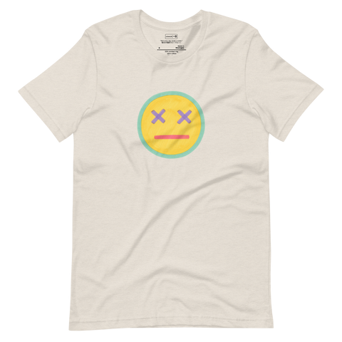 A Unisex Staple Tee that redefines the art of neutrality. The “Unamused” design features a bold, colorful face drawn in marker-style lines — cheerful hues meeting deadpan expression. A reminder that calm indifference can be its own kind of peace.