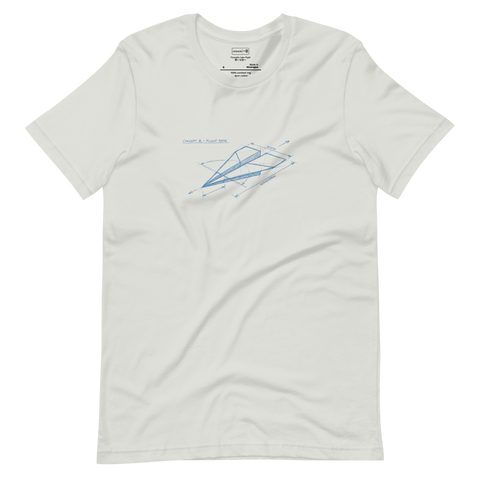 A crisp, single-line illustration of a paper airplane gliding upward captures the essence of this unisex t-shirt. The design relies on negative space and sharp angles to evoke a sense of momentum without clutter.