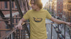 A soulful exploration of urban comfort featuring the Melted Comfort tee in NYC. This visual captures the intersection of high-street grit and the nostalgic warmth of our signature gold heather fabric.