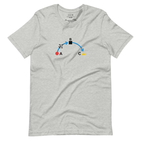 A cinematic glimpse of travel in motion at LAX, featuring our minimalist flight path graphic tee. The scene captures the quiet anticipation of transit, blending functional style with the romance of the journey.